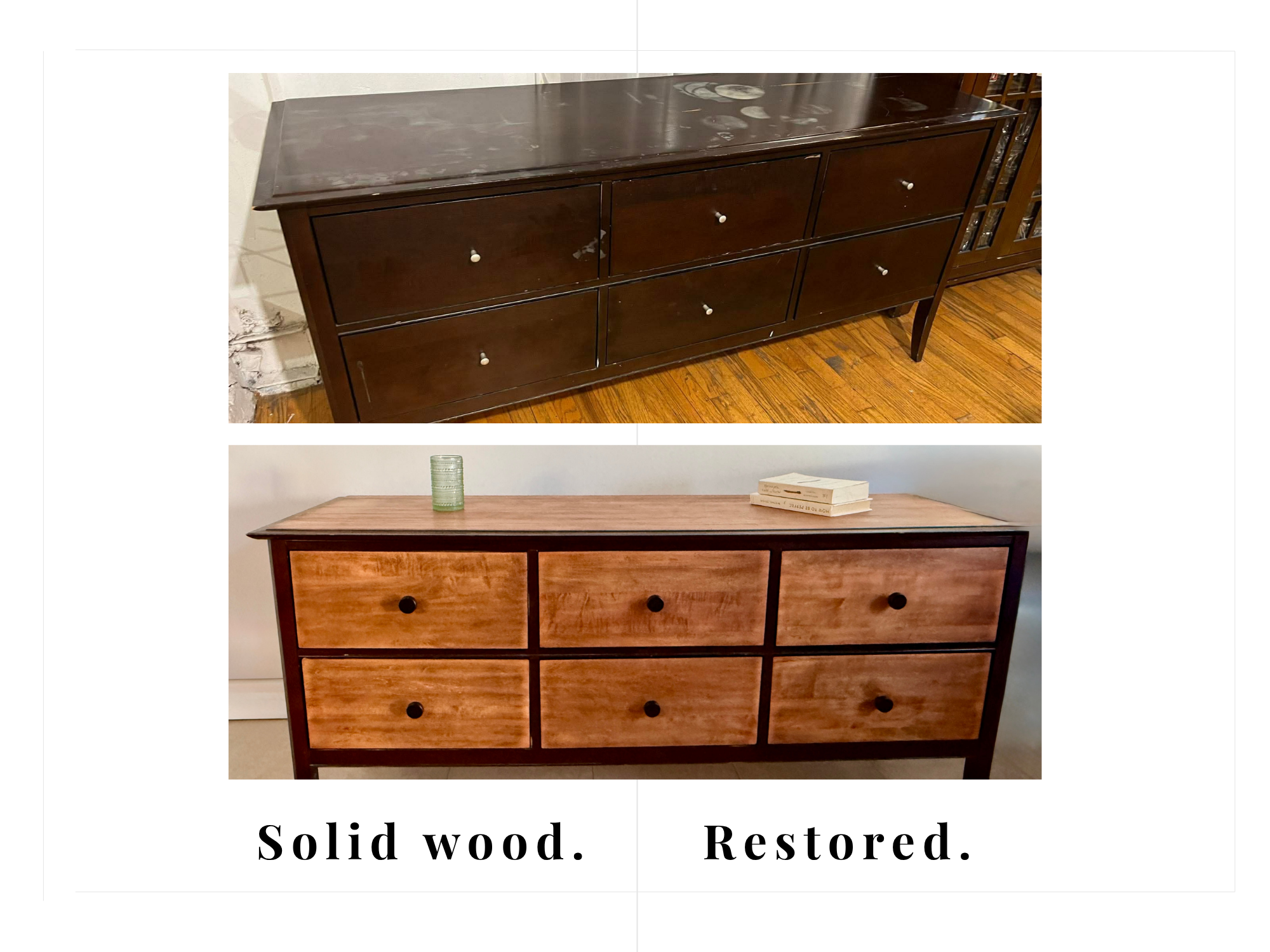 Complete surface restoration. Ideal for worn, faded, or heavily used pieces.