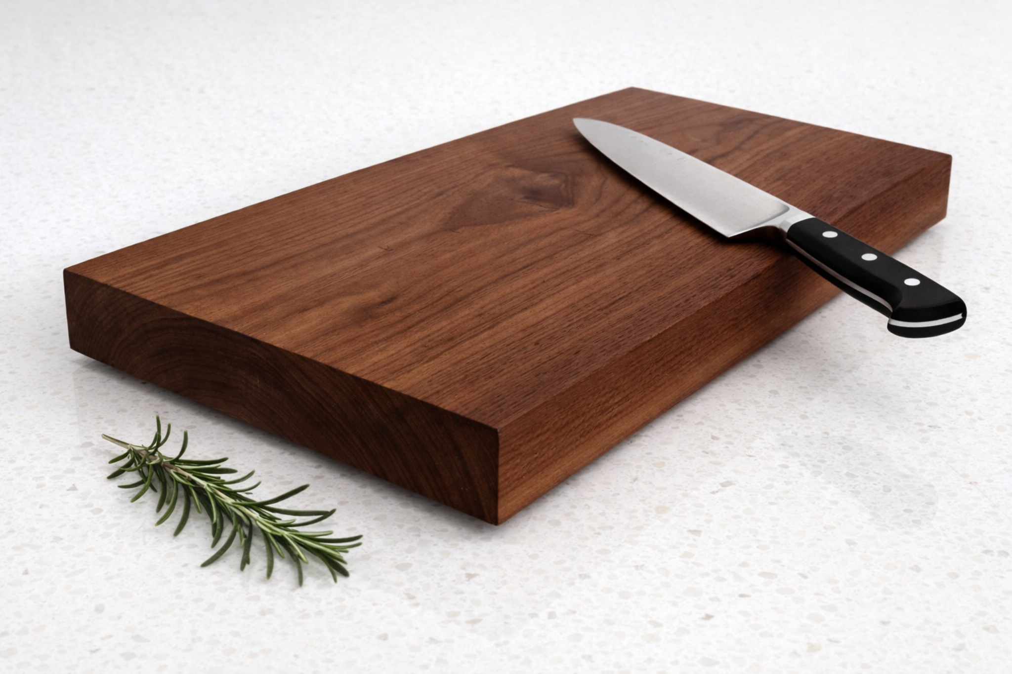 I craft kitchen boards in solid hardwood and restore vintage furniture — each piece shaped and finished by hand.